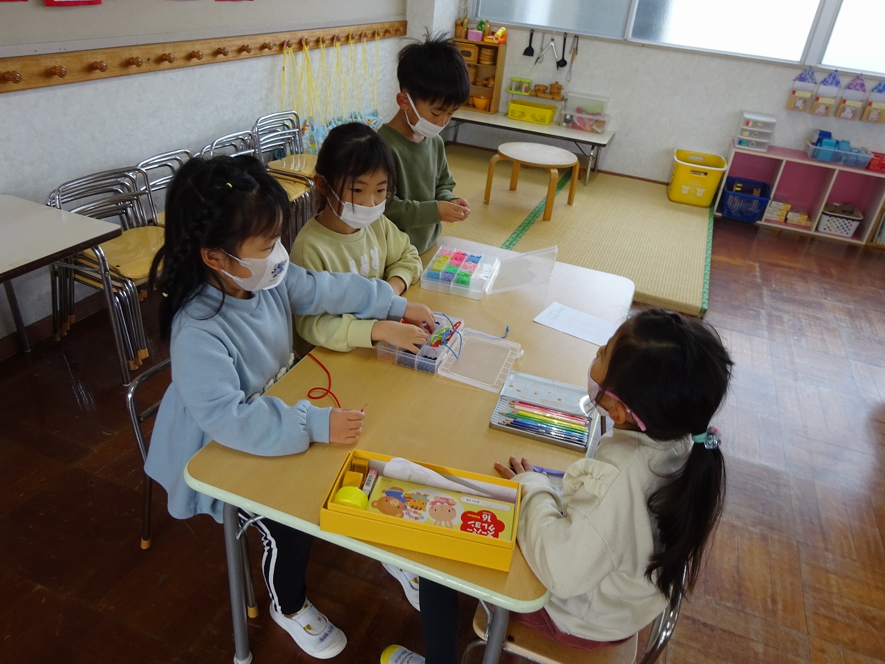 お部屋では、製作や絵画や 音楽など頑張ります! |